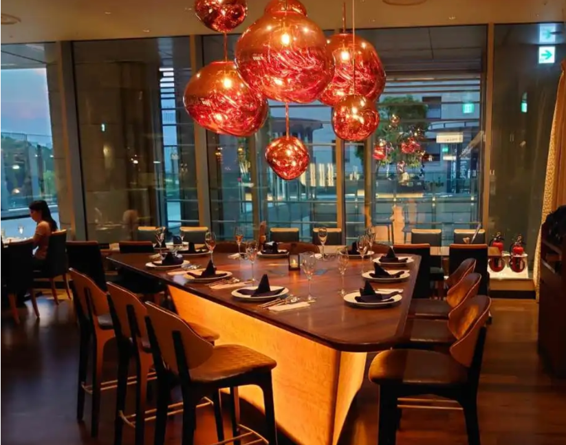 店内は約60席。木目と照明が織りなす上質な空間は、昼は開放的、夜はラグジュアリーな雰囲気に一変します。カウンターやソファ席を備え、貸切は着席40名・立食60名まで対応。ランチ、女子会、デート、記念日、企業パーティーなど、シーンを問わず使いやすいレイアウトです。
