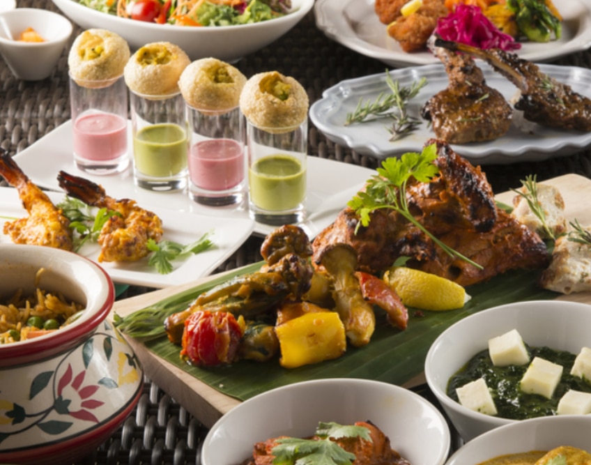 ランチでは数種類のナン(チーズナン・ガーリックナンなど)を選べるセットが人気。ディナーでは、スパイス香るほうれん草カレーや、彩り豊かなタンドール料理が登場します。ベジタリアンやヴィーガン対応メニューも充実し、車椅子・ベビーカー対応など、あらゆるゲストに配慮した設計もポイントです。