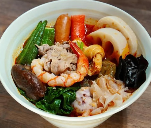 看板メニューは「熱々麻辣湯(マーラータン)」。辛さは0〜3辛から選べ、1辛でも十分な旨味があり、3辛でも「辛くて痺れるけど旨さが勝つ」バランスが魅力。トッピングは自由に選べ、わかめ・長芋・豆腐・椎茸・チンゲン菜といった野菜類に、湯葉や鶏団子などを組み合わせるスタイル。軟骨入り肉団子のコリコリ食感や、トッピング横に「体に良くなる効果」が記載されている点が好評です。また、ラーメンへの変更オプションもあり。