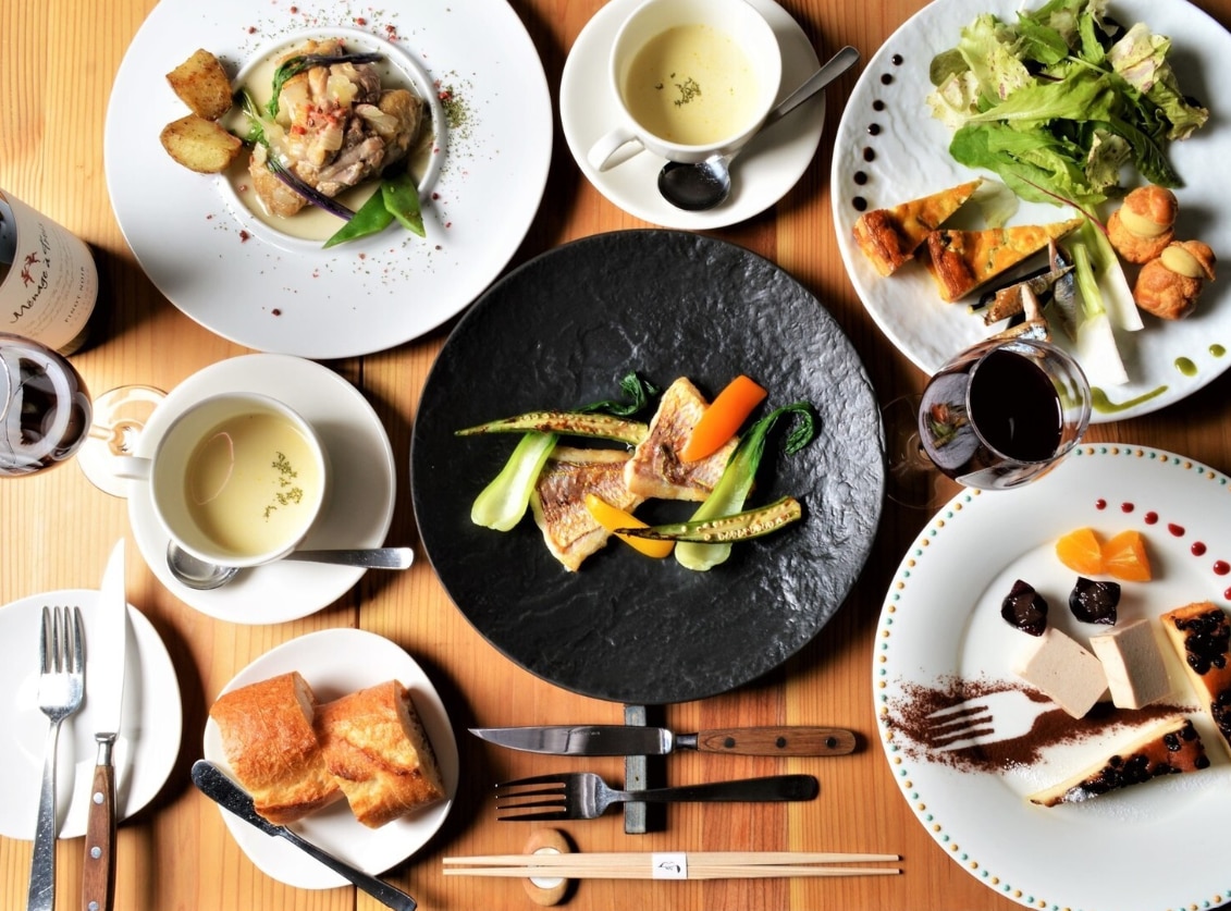 この店の魅力は、地元三河を中心とした旬の野菜や魚、肉を使った創作フレンチ料理。季節や入荷によって内容が変わるため、訪れるたびに新たな発見があります。 代表的な “おすすめ” は、日替わりの前菜盛り合わせ、魚または肉を使ったメインディッシュ、そしてその日の気分に合わせたワイン。ワインにこだわりがあり、グラスワインも数多く揃うため、料理とお酒の相性を気軽に楽しむことができます。 コース料理も充実しており、たとえば当日予約可の「キャトルディナー(全7品)」や、前日までに予約することで楽しめる上質なコースなど、ディナーの用途に応じて選べるのも嬉しいポイントです。