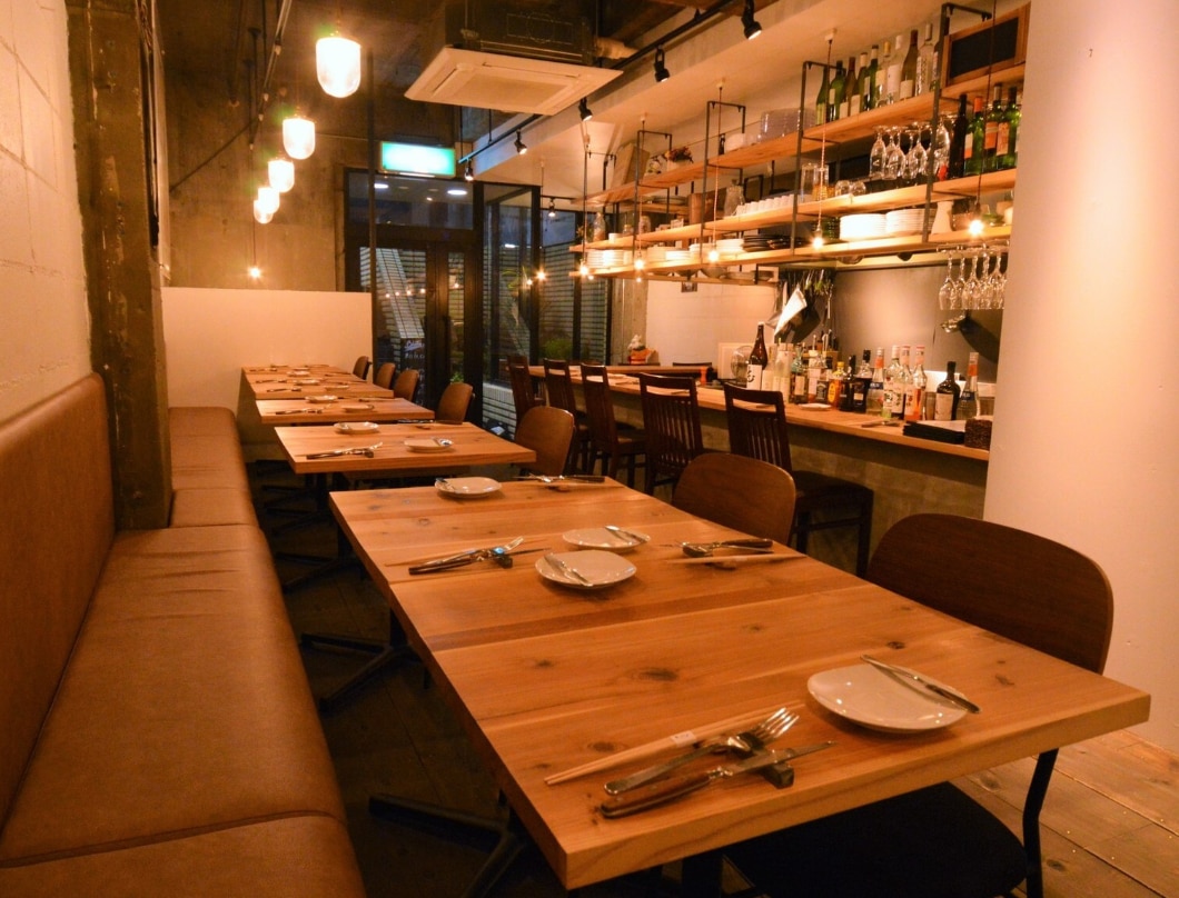 店内は地下のビルの一角にあり、カウンターとテーブルあわせて約30席。落ち着いた照明と木のインテリアが温かく、肩肘張らずリラックスできる雰囲気。全席禁煙で、静かに食事を楽しみたい人にも優しい空間です。 ランチ営業もあり、気軽な食事からディナーのひとときまで使いやすく、友人とのふらりごはんや、デート、周年や誕生日などの特別な夜にも対応可能。少人数の貸切にも対応しており、気の置けない仲間との集まりにもぴったりです。