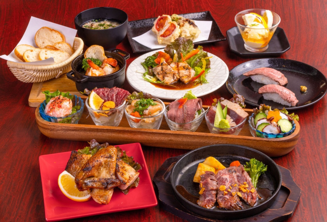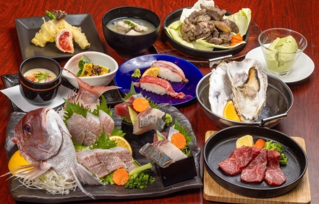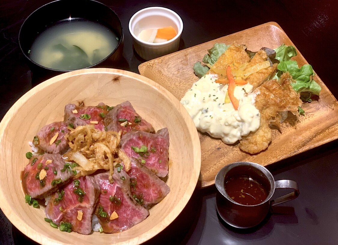 看板は宮崎牛ステーキと宮崎地鶏を使った料理。ステーキは宮崎牛ならではの肉の旨みと柔らかさを味わえる逸品です。地鶏は香ばしく焼き上げられ、味噌やタレで味付けされた居酒屋料理として人気。また、日向灘の海鮮を使った刺身や盛り合わせもあり、肉だけでなく魚介料理も楽しめるバランスの良さが魅力です。コースは3500円から用意され、飲み放題をプラスすれば宴会利用にも最適。ランチタイムには肉定食やステーキ定食など、ボリュームある定食メニューが好評です。