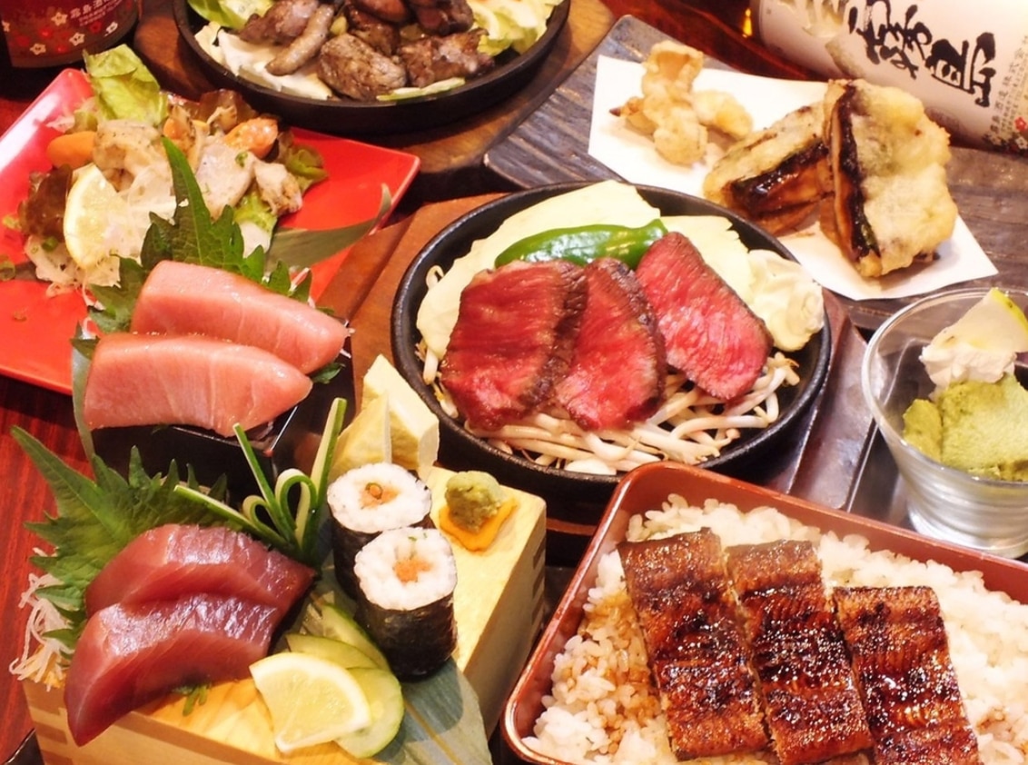 宮崎地鶏の炭火焼を中心に、とりわさ黄身醤油やレバーのたたき、むね肉のたたき葱ぶっかけなど、地鶏を多彩なスタイルで味わえます。また伝統のうなぎ蒲焼きやうな重、宮崎牛の赤身鉄板ステーキ、宮崎牛炭たたき・牛すじ煮込み、宮崎牛炙り握り寿司など、バラエティに富んだ料理が居酒屋としての満足度を高めています。