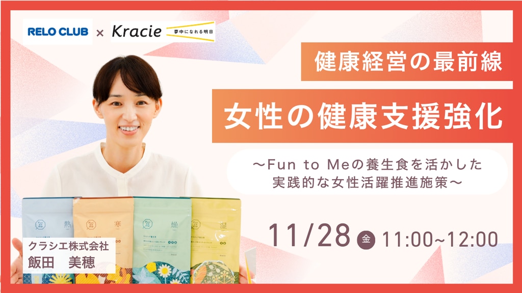 本セミナーでは、更年期の基礎知識から仕事への影響、そしてクラシエの「Fun to Me」の養生食を活かした、企業がすぐに取り組める支援策までを、わかりやすくお届けします。