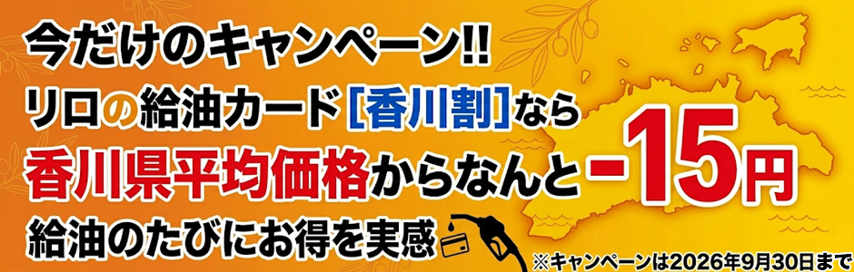 こうした背景を踏まえ、リロクラブでは2026年3月から「リロの給油カード」において、香川県の平均価格から1リットルあたり15円引きで給油いただける『香川割』を開催させました。香川にお住いの会員の皆さまの日常生活を、継続的に支援してまいります。