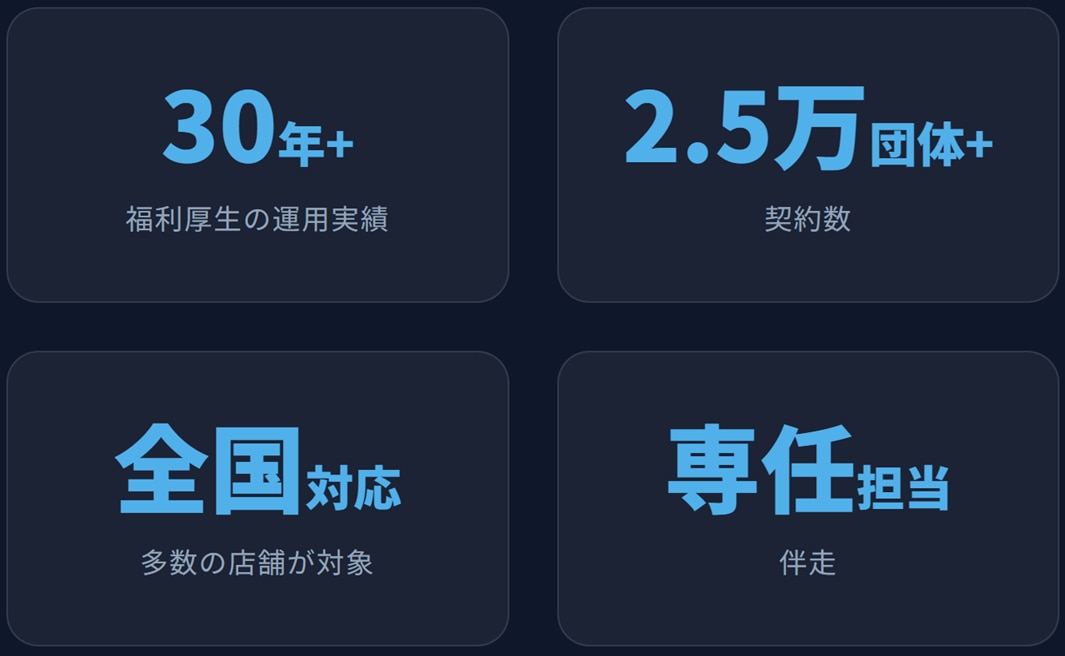 30年以上の実績を持つ業界最大手の福利厚生コンサルタントが、制度設計から導入・運用定着まで一貫してサポートします。
